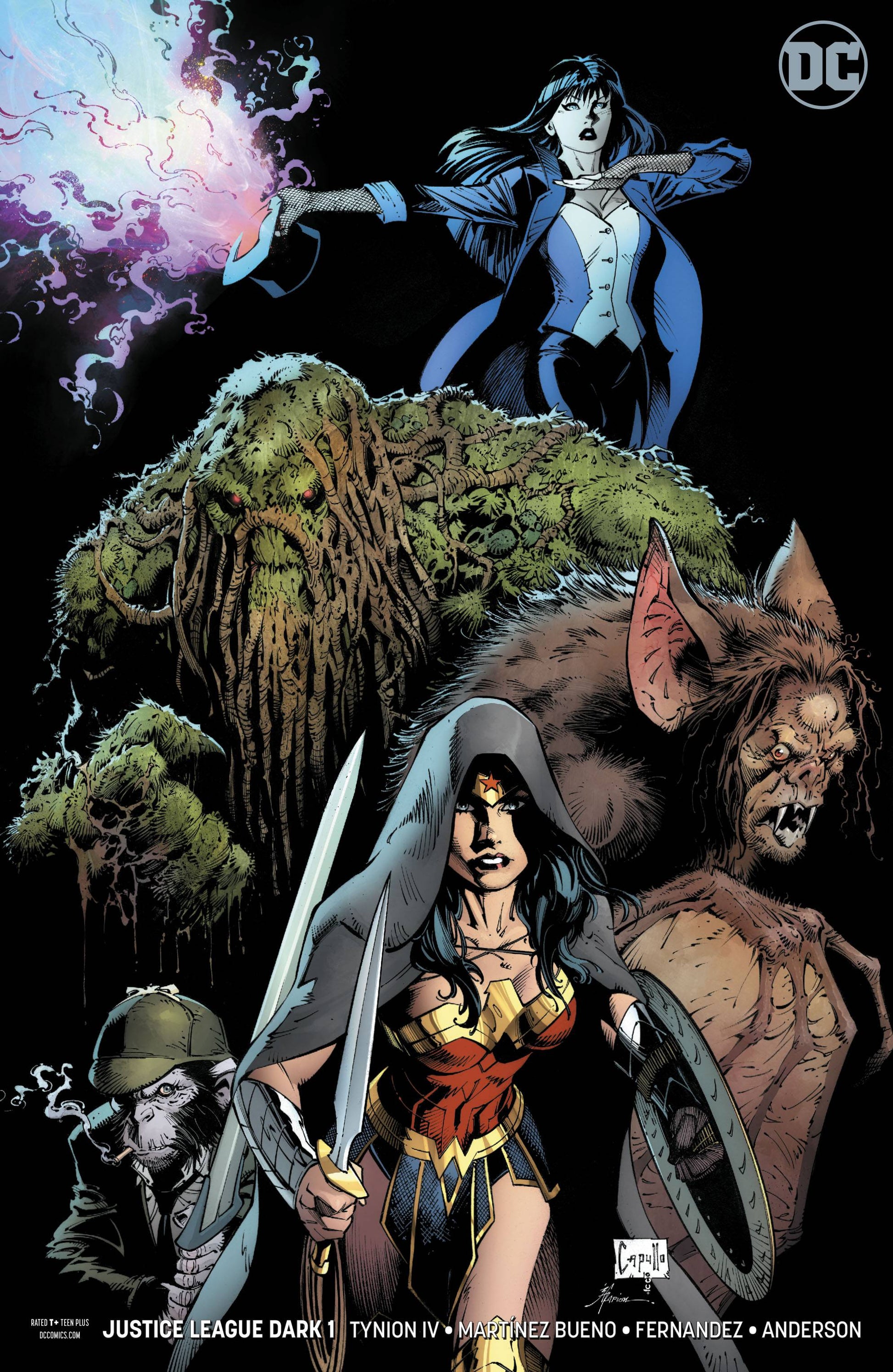 From the pages of JUSTICE LEAGUE: NO JUSTICE! Earth's magic once belonged to them. Now they want the magic back. But who exactly are they? It's up to the new Justice League Dark to find out and stop this nightmarish new threat at all costs! After the events of NO JUSTICE, team leader Wonder Woman guides the misfit magic mix of Zatanna, Swamp Thing, Man-Bat and Detective Chimp against enemies too fantastic even for the Justice League. Plus, what awful things are coming through the Tree of Wonder? Dark days ahead...